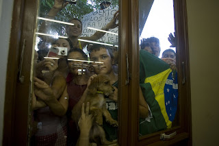 num sítio do outro lado da pista, a polícia teve de sair correndo porque umas crianças passaram pelo arame farpado e caminhavam em direção à pista pouco antes do jatinho pousar.