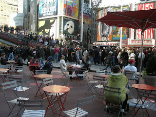 engraçado: da janela do meu hotel em times square, vejo de ângulo privilegiado a profusão de anúncios de espetáculos na broadway e os turistas tirando fotos de figuras bizarras que ganham um trocado interpretando a si mesmos na rua.