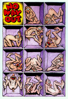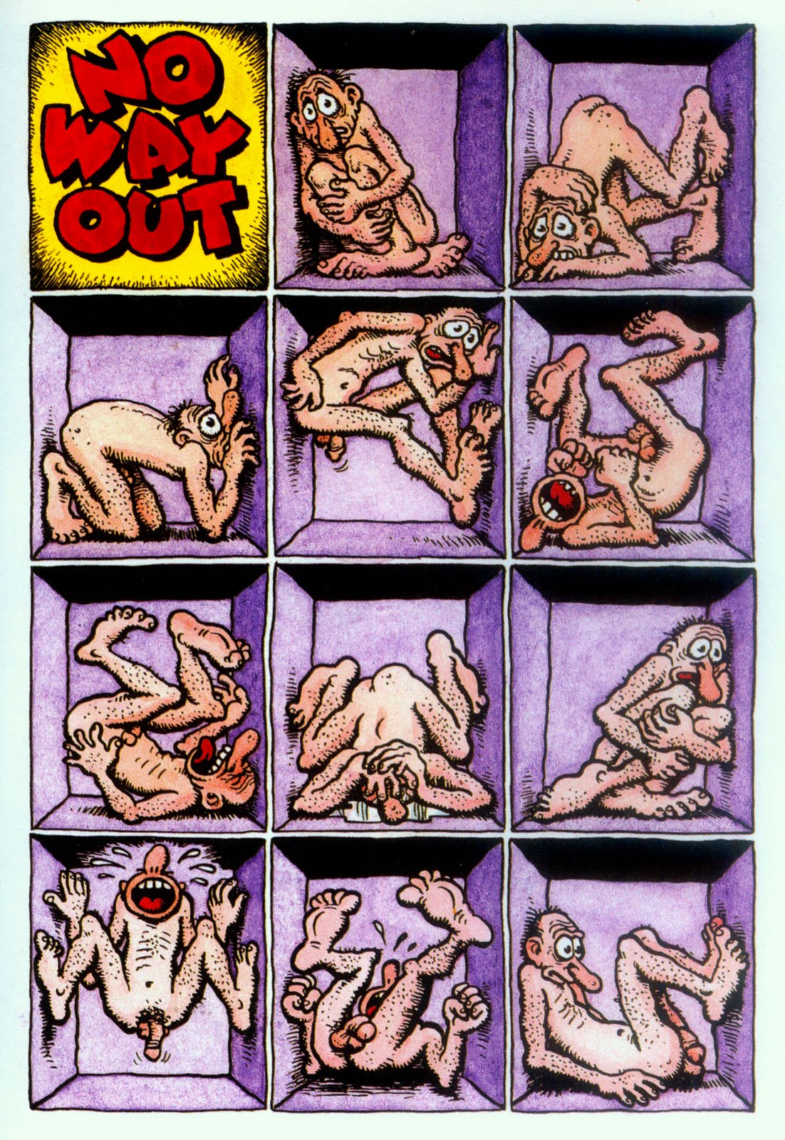 “Eu tinha 25 anos de idade quando tudo aconteceu. Foi um caso de “tudo ao mesmo tempo agora”. Eu tomei rapidamente consciência do que se passava. Eu era algum tipo de “porta-voz” para os hippies ou algo do tipo. Eu não tinha ideia de como administrar minha nova posição na sociedade. Ainda estou trabalhando nisso, essa é a verdade. Pegue Keep on Truckin’, por exemplo. Keep on Truckin’ é a maldição da minha vida. Esse pequeno cartum estúpido apanhado em sua plenitude! Havia um DJ numa rádio dos anos 70 que grunhia a cada 10 minutos: ‘And don’t forget to KEEP ON TRUCKIN’…’ Cara, aquilo era nauseante! Pés grandes são iguais a otimismo coletivo. Você é um garoto com o pé na estrada! Você está cruzando a linha! Isso é proletário! Isso é populista! Fui jogado para fora da trilha. Eu não queria me tornar uma espécie de artista-cartão-de-visitas da contracultura – aquilo que Lenny Bruce advertia que nos poderia acontecer. Foi então que eu comecei a soltar todas minhas fantasias sexuais perversas. Era o único caminho de cair fora dessa coisa de O MAIS AMADO CARTUNISTA HIPPIE DA AMERICA. E funcionou. Snatch and Big Ass Comics fez muitos deles darem meia-volta rapidamente!