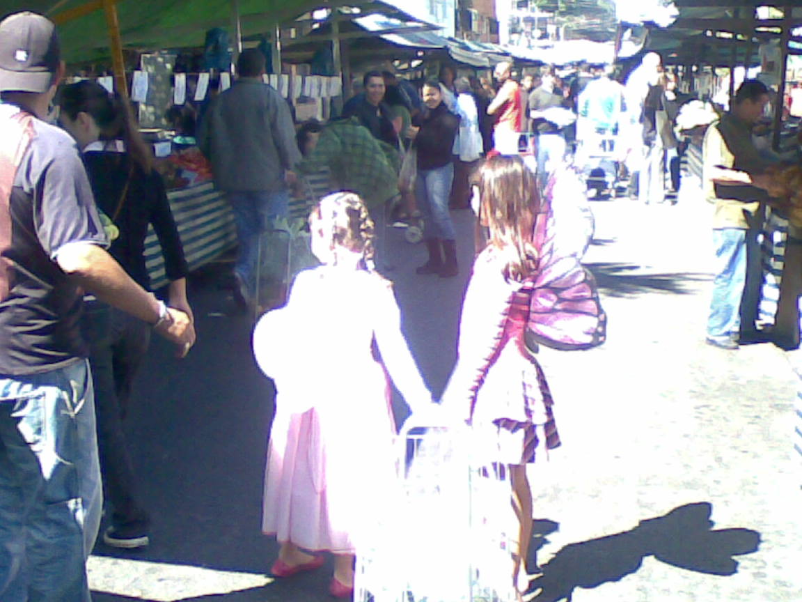 maravilhar-se com meninas com asas de borboleta na feira de manhã.
