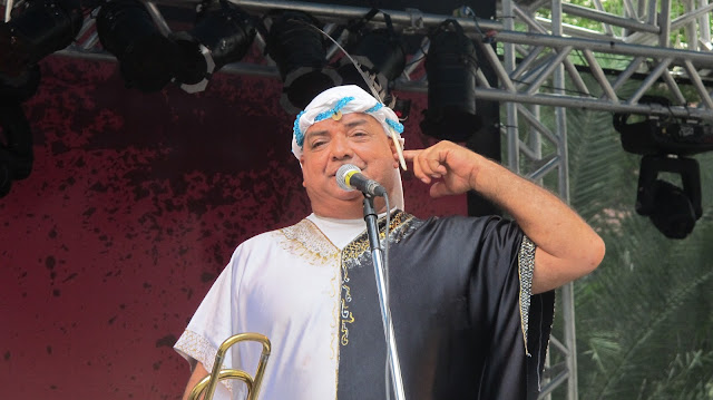 Com uma pena de urubu no turbante, arrastando um trombone, o baiano Gerônimo entrou em cena acompanhado de duas vocalistas bonitas e com uma cara fofa de Buda Nagô de lojinha de templo. Depois de Luiz Caldas e Sara Jane, era um dos pioneiros da geração da chamada “axé music” desembarcando no palco Arouche, às 14h do domingo.