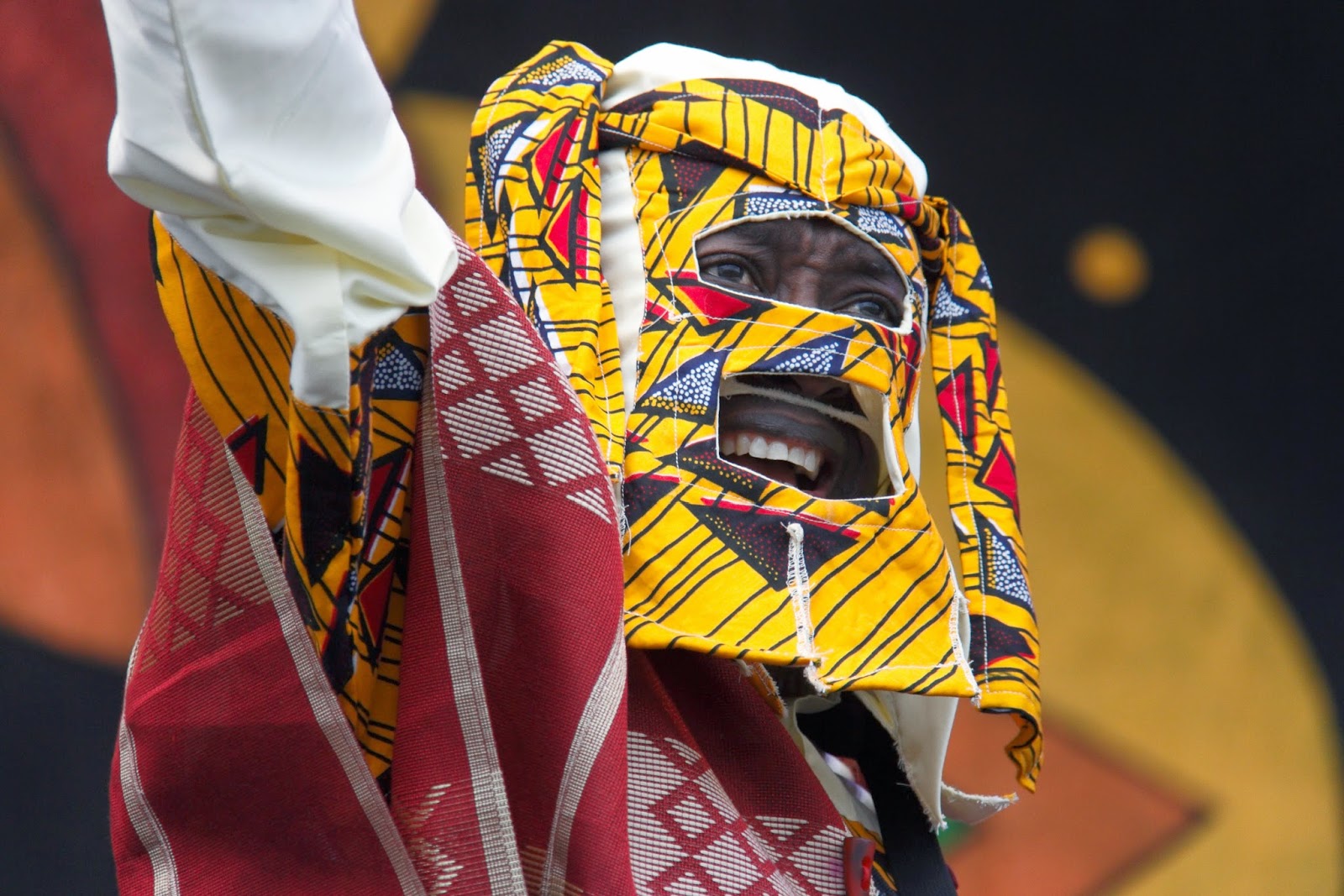 Tem mais de 20 anos que o ídolo nigeriano de afrobeat Lágbájá toca seu sax e canta mascarado, o que o projeta como um fenômeno parecido com os mascarados do rock e do pop – Slipknot, Daft Punk, entre outros. A máscara, ele explica, é para indiferencia-lo dos homens comuns, mas o nome dele mesmo é Bisade Ologunde. Mas jamais canta com sua identidade verdadeira por motivo ideológico.
