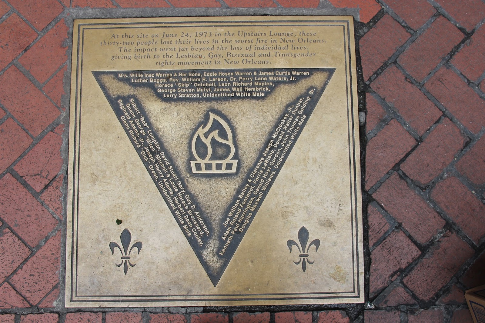 O que diz a placa: depois do crime, surgiu o movimento de Lésbicas, Gays, Bissexuais e Transgêneros da Louisiana.