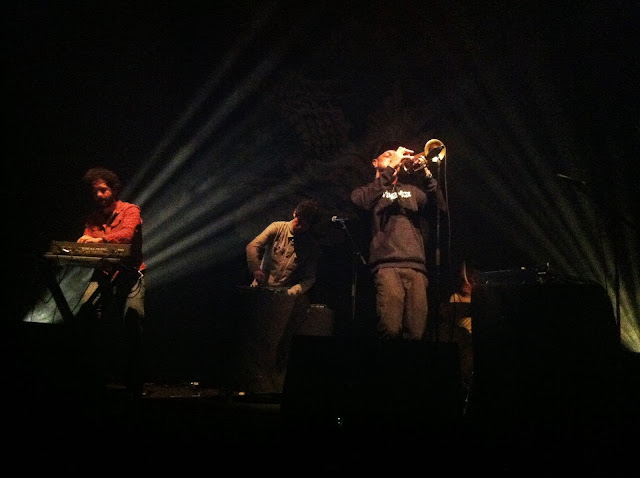 Como se Coltrane chapado e Don Cherry virado entrassem por engano no Clash Club e invadissem um show de uns garotos eletrônicos locais barbudinhos.
