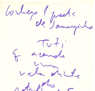 QUERO APOIARMais de quatro décadas depois, a filha daquele gerente da Varig, Caroline de Paula, resolveu abrir o envelope que seu pai guardava e se deu conta do que tinha em mãos. Ela procurou o experiente jornalista Célio Martins, que confirmou a autenticidade do achado com a família do poeta. Assim, por obra e graça do destino, Célio organizou uma cerimônia de entrega dos escritos inéditos à família, que será no próximo dia 18 de março, quarta-feira, às 17h30, na Biblioteca Pública do Paraná (BPP). No local, só cabem 132 pessoas, mas a poesia, que é um “inutensílio”, como dizia o autor curitibano, sempre acha um jeito de vazar para fora, e logo teremos ideia do que havia naqueles manuscritos do poeta. Por enquanto, sabemos que há poemas inéditos, anotações e uma tradução para o inglês da canção Esotérico (1975), de Gilberto Gil.